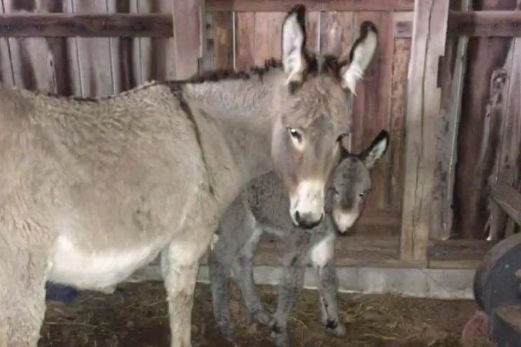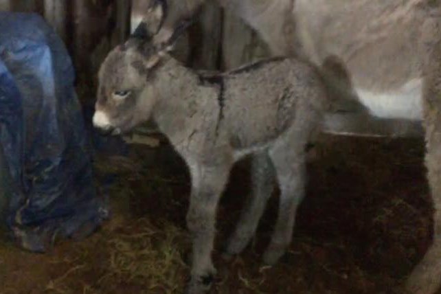We bought Maybelle and her young jenny, Hattie, back in May 2017 because they didn’t get along with their owner’s horses. Well, these donkey’s are mostly gentle, but they are far from pets as we bought them to help protect the cows from the coyotes. Well, the afternoon of Monday, January 16, 2018, Ned checked on the cattle water and discovered this in the field!